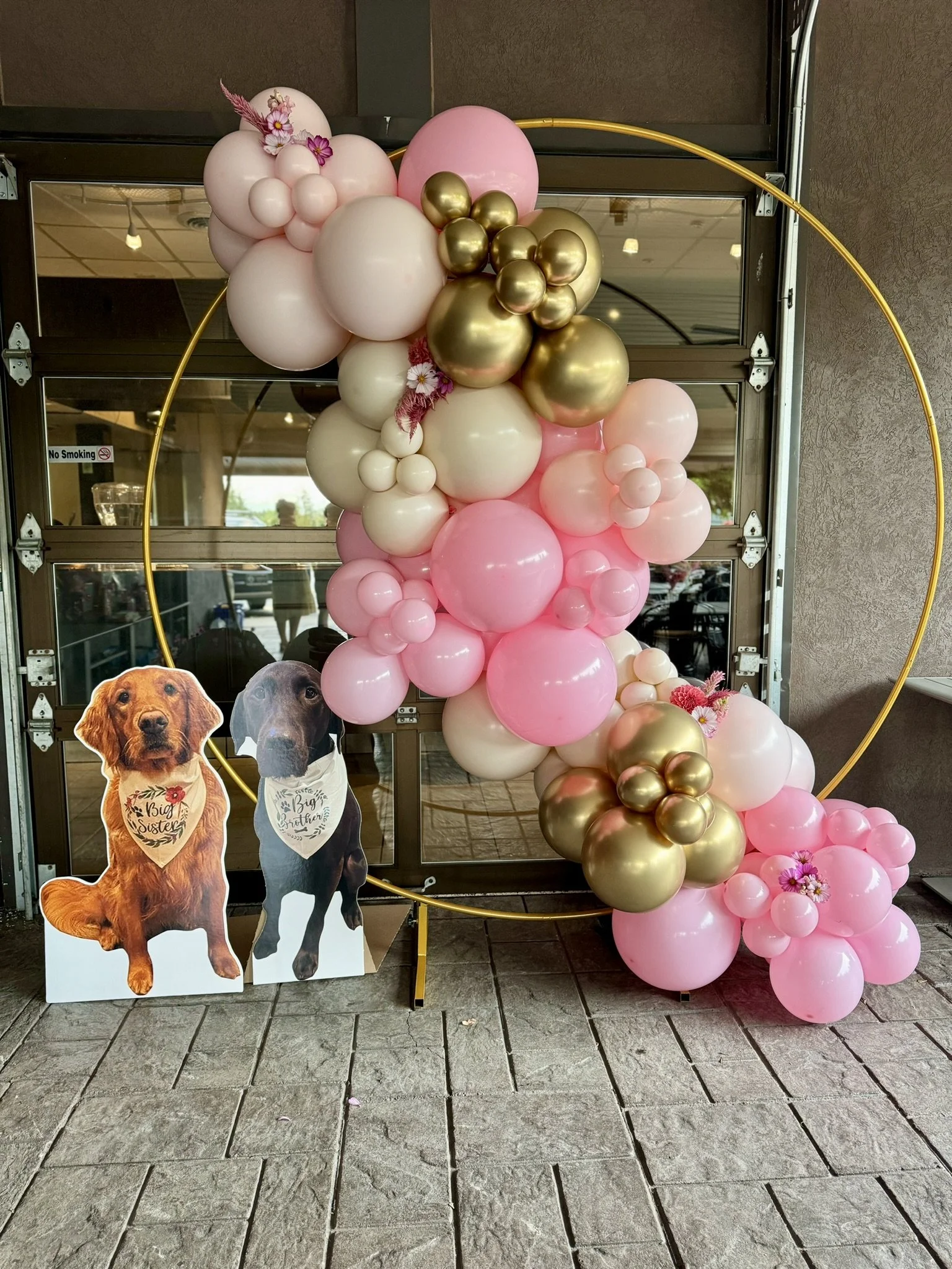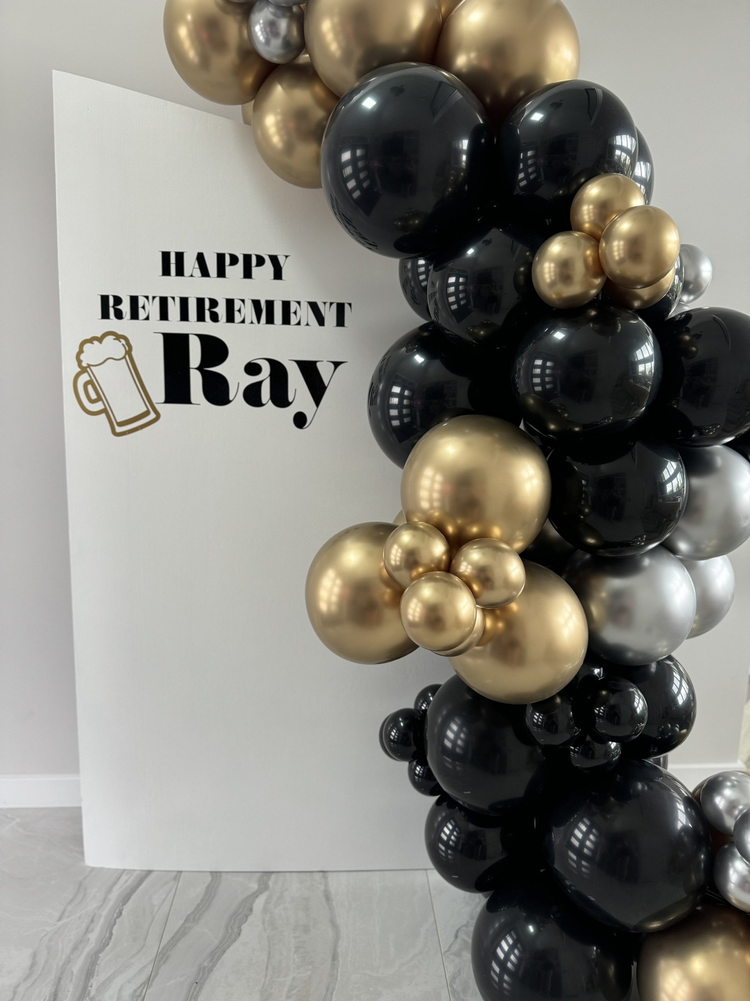 Includes 6ft foam backdrop, 8ft balloon garland and custom vinyl - all for you to keep! *Suitable for indoor use only