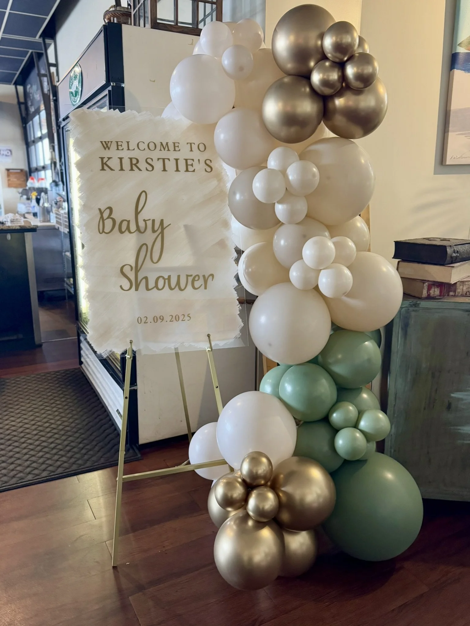 Hand-painted with custom vinyl. Balloon garland add-on and easel available